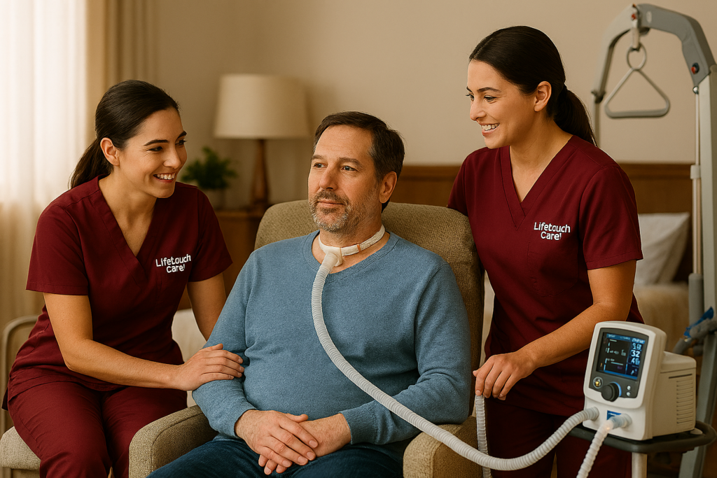 Lifetouch Care provides nurse-led ventilator support at home, enabling individuals with long-term respiratory needs to live safely, comfortably, and confidently in familiar surroundings. Our registered nurses are skilled in managing both invasive and non-invasive ventilation, ensuring airway patency, monitoring oxygen levels, and responding promptly to any changes in respiratory status.